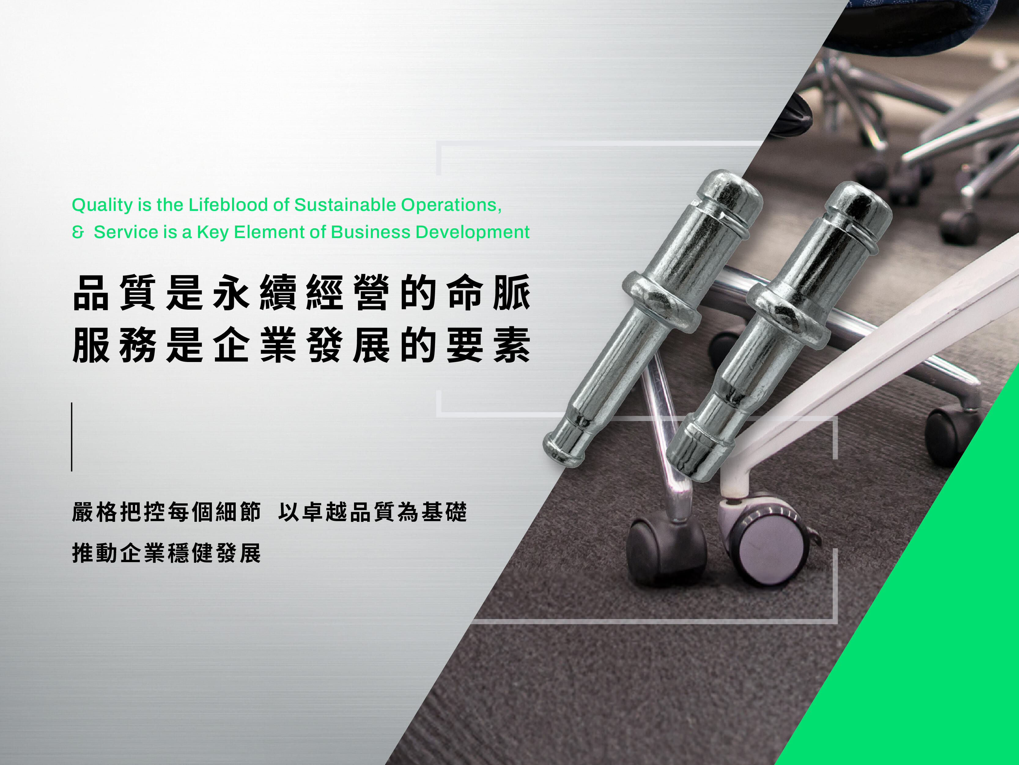 The company has been established for 40 years. It mainly produces chair wheel upright shaft products. Its output and production capacity have reached the highest level, and its quality has obtained ISO-related certifications.